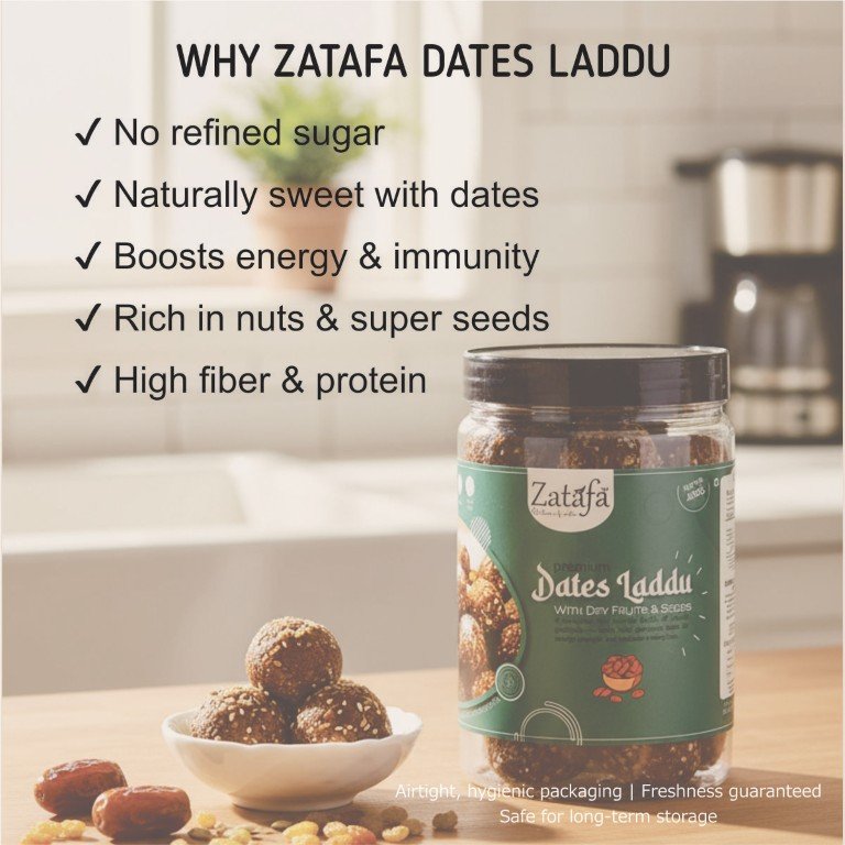 - No Added Sugar: Sweetened naturally with premium quality dates — 100% refined-sugar-free.