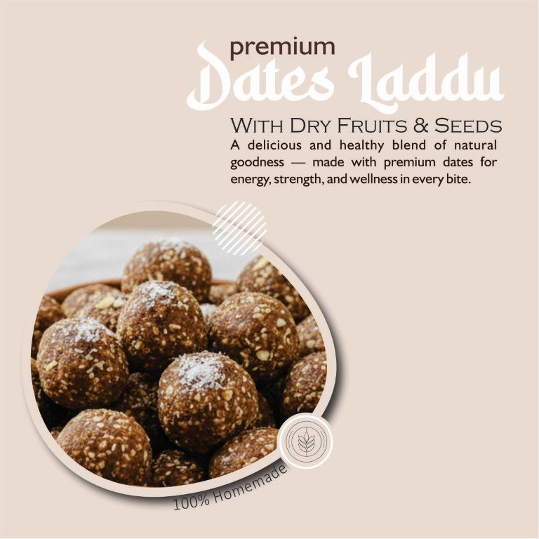 Enjoy the natural goodness of our Khajoor Laddu Premium, made with blended dates mixed with pineapples, almonds, buttermilk, sunflower seeds, melon seeds and toasted chana. All the dried fruits and seeds are gently roasted in pure form, which gives them an intense aroma and an authentic flavor. No added sugar, no preservatives, no artificial flavourings: a perfect energy fridge and no remortification for all ages.